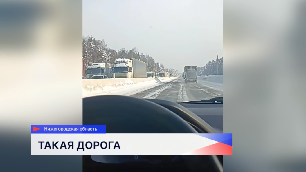 На трассе М-7 в Нижегородской области, судя по карте, пробка длиной почти 30 км. Она начинается от поселка Смолино и заканчивается в Гороховце. И, судя по кадрам, напоминает стиральную доску: на одних участках движение встало из-за аварий, на других — из-за буксующих фур.