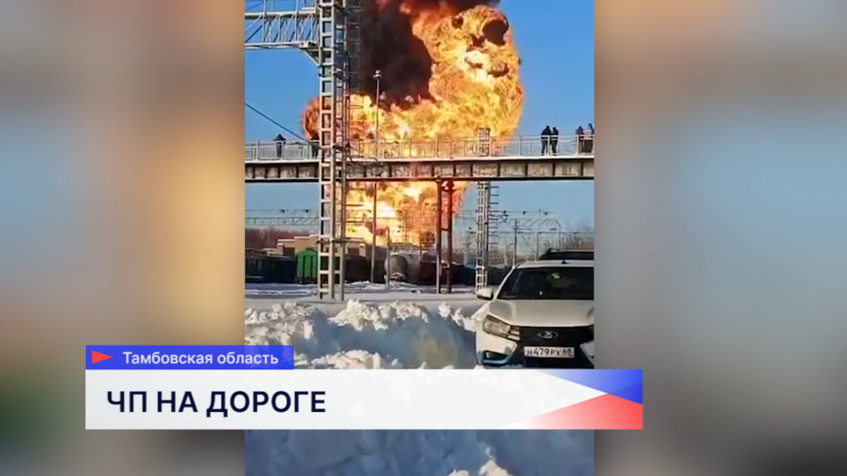 В Тамбовской области из-за схода вагонов с рельсов произошло возгорание пяти цистерн с бензином