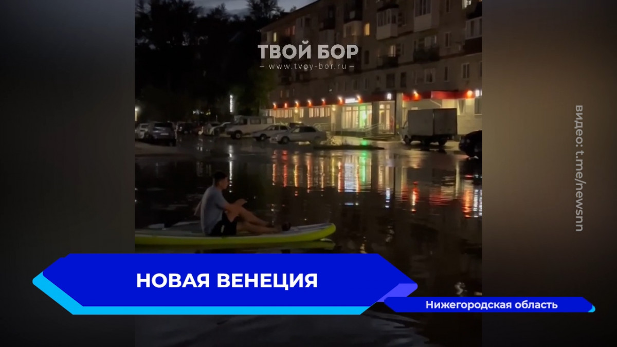 Жители Бора в Нижегородской области встретили непогоду и сильные дожди с юмором. Вместо того чтобы жаловаться на неудобства, они нашли в них положительные стороны и устроили заплыв на сапе в своей личной «Венеции» — большой луже между домами.