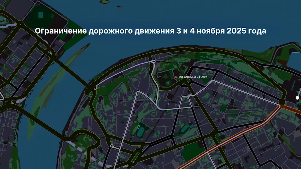 Движение транспорта на центральных улицах Нижнего Новгорода в праздники временно ограничат. 3-го ноября на целый день закроют проезд по Ивановскому съезду, 4-го до 18:00 по Зеленскому — от площади Минина и Пожарского до улицы Широкой, а также проезды к ней по улице Октябрьской и Рождественской от переулка Нагорного.