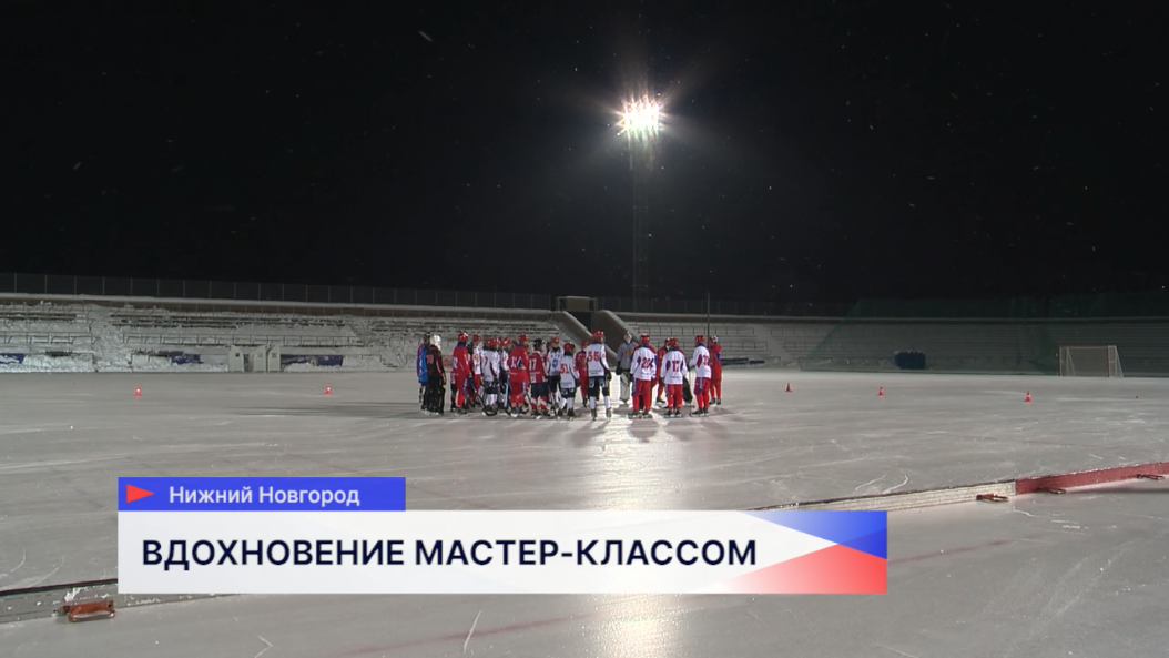 Уникальный мастер-класс от национальной сборной России по хоккею с мячом. Место действия — стадион «Труд». Участники — хоккеисты детских спортивных школ Нижнего Новгорода.