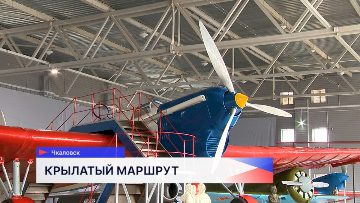 «В центре ангара перед нами легендарный краснокрылый АНТ-25. Именно на этом самолёте Валерий Чкалов, Георгий Байдуков и Александр Беляков совершили два дальних беспосадочных перелёта».